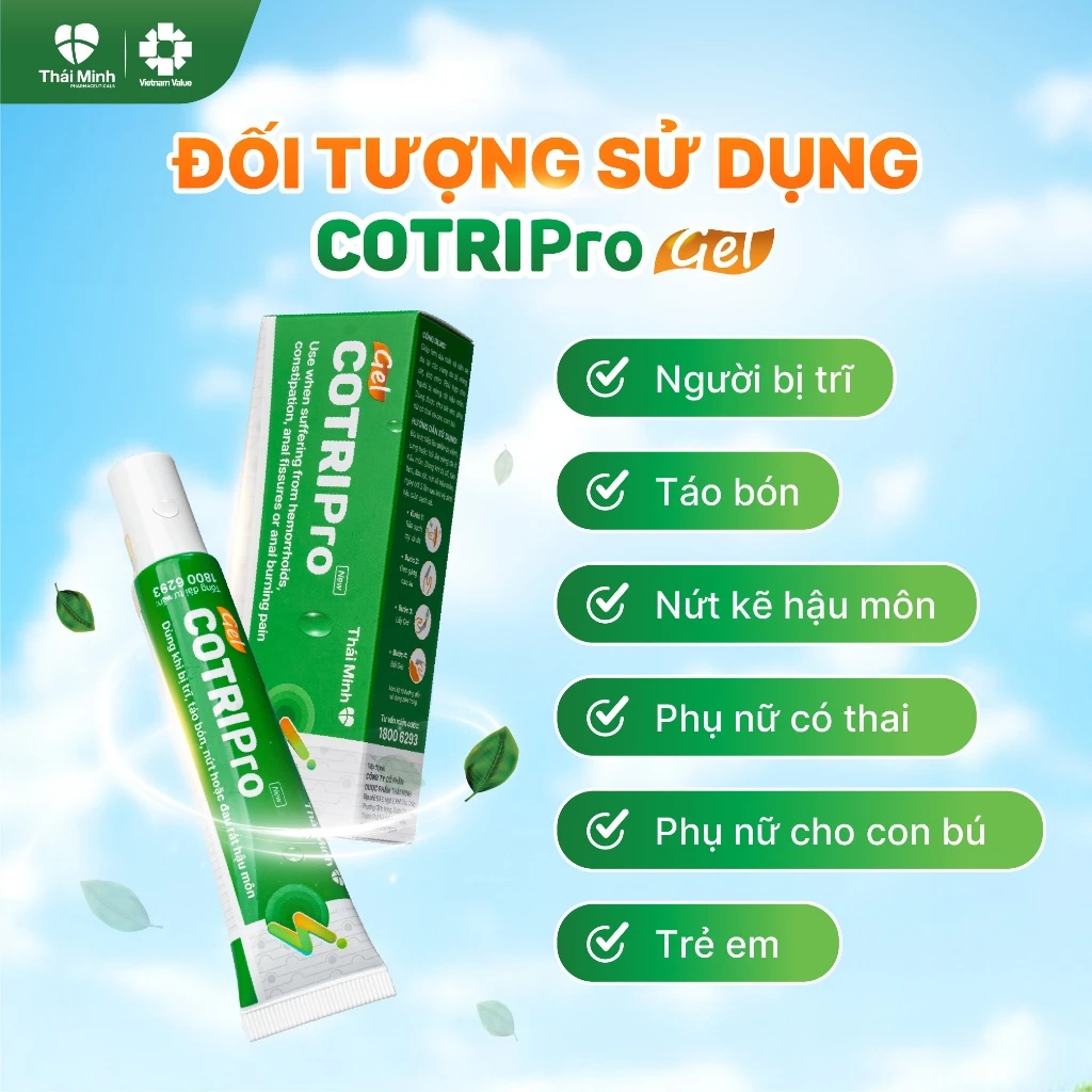 Cotripro Gel Thái Minh – Gel bôi trĩ, dùng khi bị trĩ, táo bón và rát hậu môn, giúp co nhanh búi trĩ