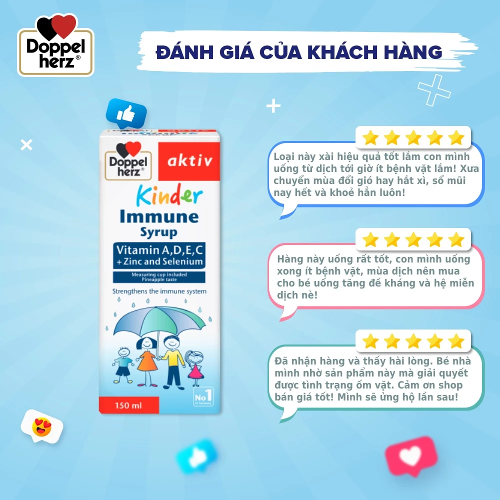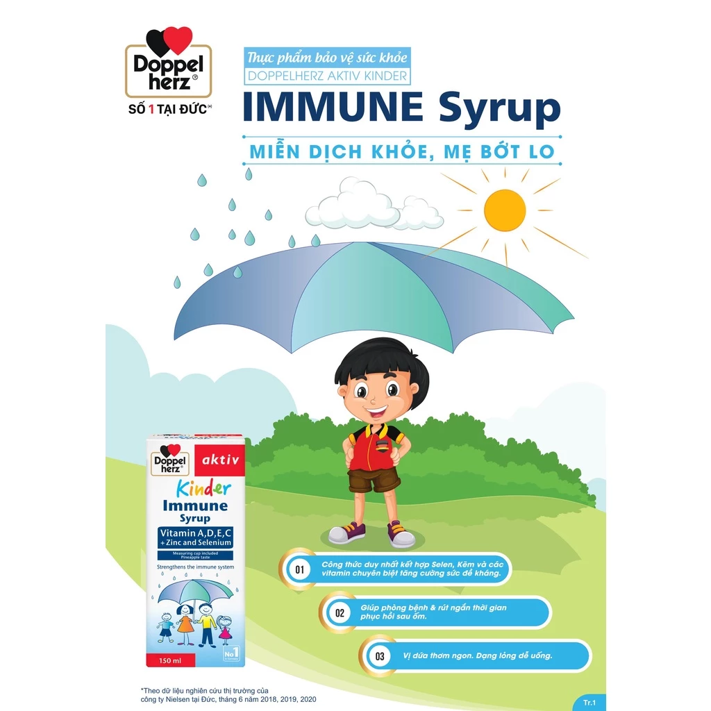Siro tăng đề kháng cho bé Doppelherz Kinder Immune Syrup hỗ trợ phòng ngừa ốm vặt cho bé