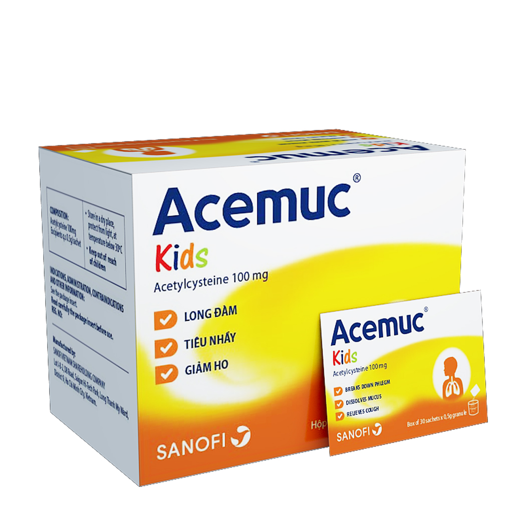 Thuốc long đờm, tiêu nhày, giảm ho ACEMUC KIDS (Acetylcystein 100mg) – Hộp 30 gói