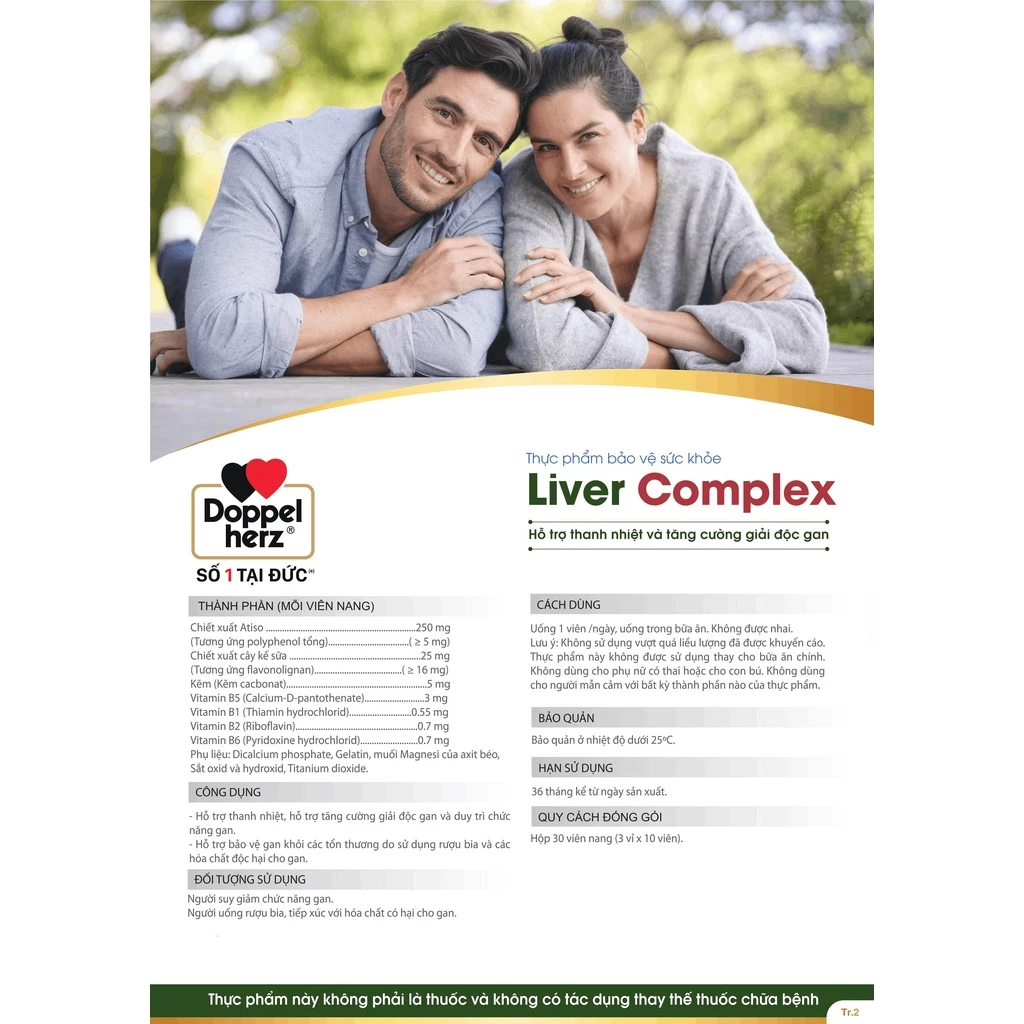 – Thực phẩm bảo vệ sức khỏe Liver Complex chứa chiết xuất atiso, chiết xuất kế sữa và các vitamin, khoáng chất hỗ trợ cải thiện chức năng gan và hỗ trợ gan khỏe mạnh.